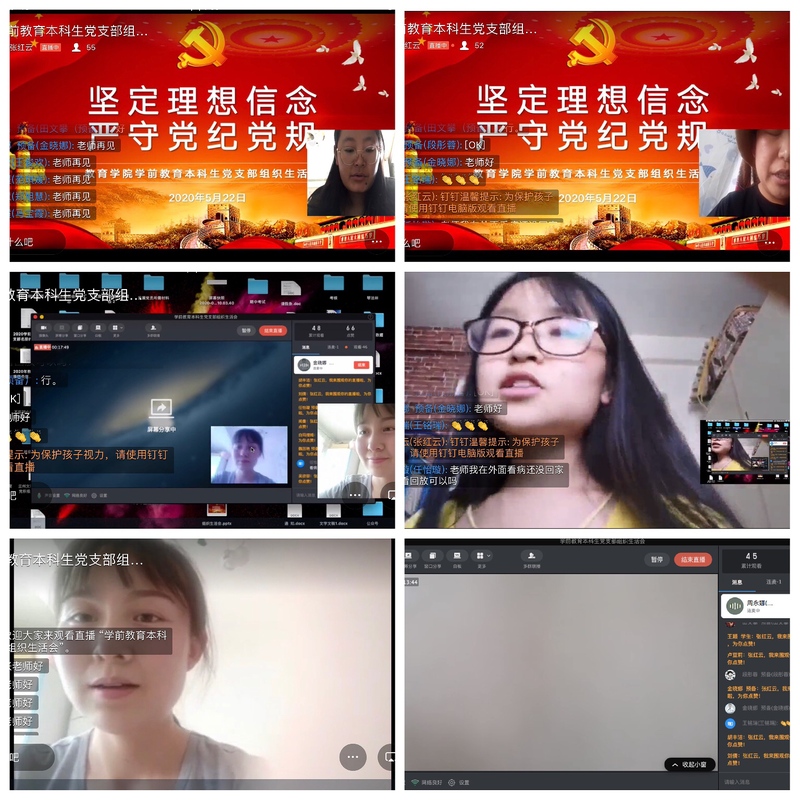 2020年5月22日下午,教育学院学前教育本科学生党支部,通过钉钉群直播的方式召开“坚定理想信念,严守党纪党规”组织生活会,本次大会由支部书记张红云主持,支部全体党员党员参加了本次组织生活会。