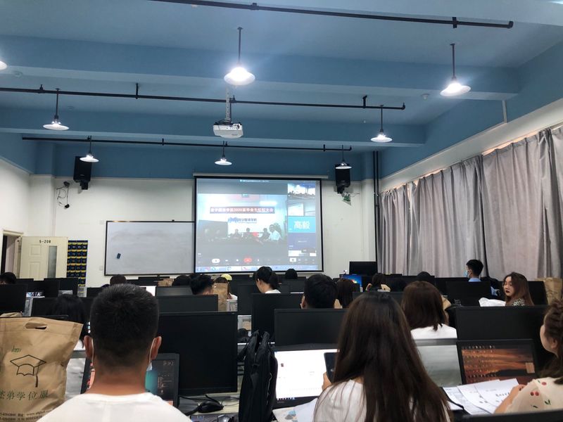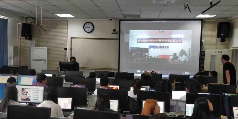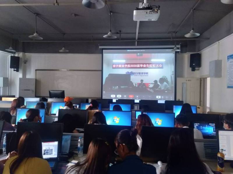 为进一步做好疫情状况下毕业生的本科答辩和文明离校相关工作,5月30日上午,数字媒体学院在会议室召开了2020届毕业生钉钉大会。数字媒体学院院长李恒杰教授、副院长黄珍副教授、计算机系主任张旭、办公室主任高毅、实验室主任洪晓芬、创业就业办主任姚林出席此次现场大会,毕业班各班主任在分会场召集并参加会议。学院2020届毕业班级16数字媒体技术(虚拟现实与互动媒体)班、16数字媒体技术(影视后期与游戏动画)班、16视觉传达设计(数字媒体方向)班、 16计算机应用技术班、16计算机网络技术班同学分别在各自教室通过钉钉视频的方式参加了会议。