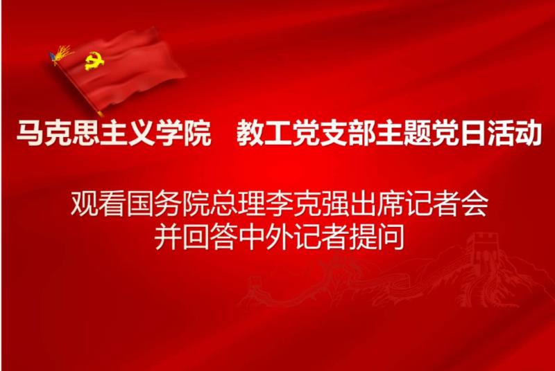 教工支部组织全体党员通过视频分享的形式收看了国务院总理李克强出席记者会并回答中外记者提问的现场实况。学院教工支部要求全体党员必须要进一步提高政治站位,不断树牢“四个意识”,坚定“四个自信”,做到“两个维护”,主动对标对表以习近平同志为核心的党中央提出的新标准新要求,把思想和行动统一到“两会”精神上来,以团结凝聚力量,用实干创造未来,推进学院和学校事业全面发展,努力为办好党和人民满意的教育做出自己的贡献。