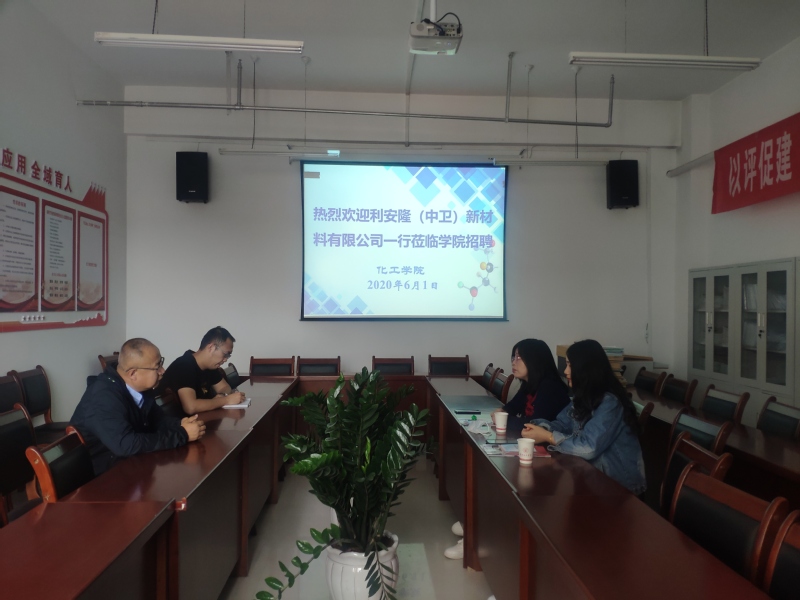2020年6月2日,利安隆(中卫)新材料有限公司人事经理王月英一行两人来化工学院洽谈校企合作事宜。
