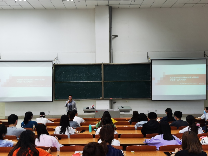 6月3日19:30分,数字媒体学院党总支书记陈小琴在5-407教室以《从全面从严治党谈树立正确入党动机,争取做一名共产党员》为题,为入党积极分子讲授了一堂党课。