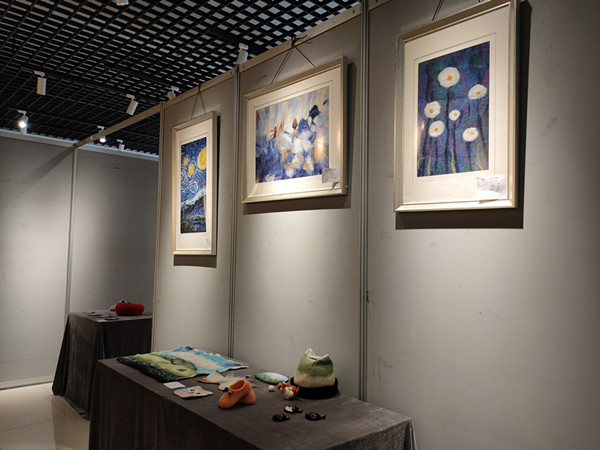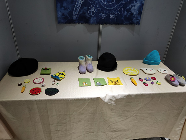 此次展览为2017级美术工艺美术方向《纤维艺术》课程的教学成果汇报,共展出了同学们的扎染作品三十余件,毛毡作品二十余件。扎染与擀毡都属于国家非物质文化遗产的传统手工技艺,在我国有着悠久的传承历史,但随着时代的变迁,社会生活的改变,这些曾经具有辉煌历史的传统技艺正面临“生死考验”。为了使之得到更好的保护和传承,我院将扎染艺术和擀毡艺术作为纤维艺术课程的重要组成部分引入课堂。在教学过程中,同学们不仅认识和了解了我国优秀的传统艺术文化,同时也在同学们的创新实践下,使传统手工技艺焕发出新的活力。