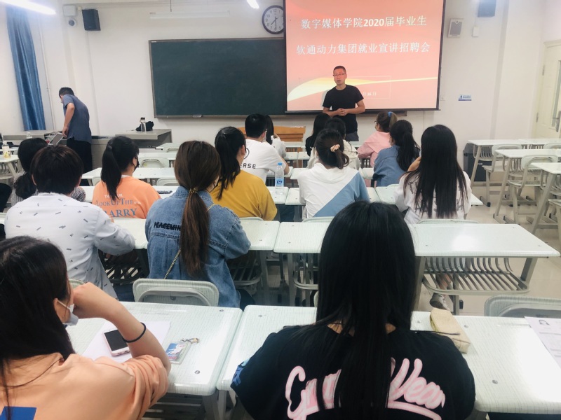 为进一步贯彻落实我校2020届毕业生就业工作总体要求,助力毕业生就业工作稳步推进,6月16日下午19:00,软通动力信息技术(集团)有限公司宁波分公司负责人张译中一行莅临我校数字媒体学院,在学院招聘教室开展了就业宣讲招聘会。此次招聘会由数字媒体学院创新创业与就业办主办,主任姚林主持。学院2020届数字媒体技术计算机工学本科生、视觉传达设计(数字媒体方向)艺术类本科、计算机应用技术专科、计算机网络技术专科班有意向的学生近40人投递简历并参加了此次宣讲。