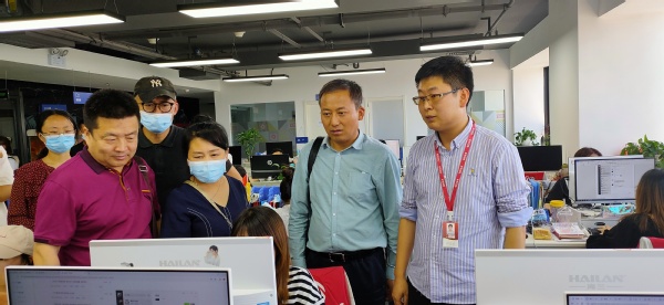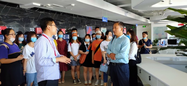 在宣天下公司运营主管任鹏的带领下参观了政旅事业部、金融大客户、房产等部门,以及公司中台和后端,详细了解了今日头条、抖音等平台运营模式、审核机制以及大数据挖掘、精准推送等技术手段。参观结束双方在会议室举行了座谈交流会,双方就5G时代下互联网发展趋势以及大学生的职业规划等内容进行交流。