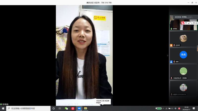 为做好2020届毕业生文明离校工作,同时为2021届毕业生做好就业指导。化工学院于2020年6月17日晚举办优秀毕业生线上云分享交流会,邀请了我院在宁波、烟台、新疆三地就业及今年考取宁波大学、湘潭大学、西北师范大学及南京航空航天大学的优秀毕业生与学弟学妹们分享经验。会议由分团委学生会戴永鑫和张鑫共同主持,学院全体无课学生参加了交流会。
