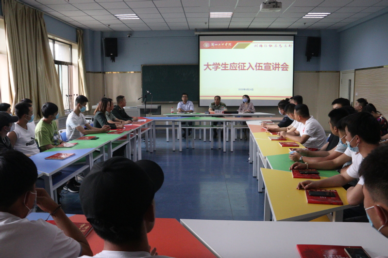 为进一步贯彻落实国家大学生征兵入伍政策,鼓励和引导我校学生应征入伍。6月24日下午,学校邀请了城关区武装部政委郝修杰,在辅导员之家举办了兰州文理学院大学生征兵入伍政策宣讲会。校党委委员、副校长刘畅出席会议,学生工作部(武装部)、各学院辅导员、2020年预征对象共70余人参加会议。会议由学生工作部(武装部)部长孙亮主持。