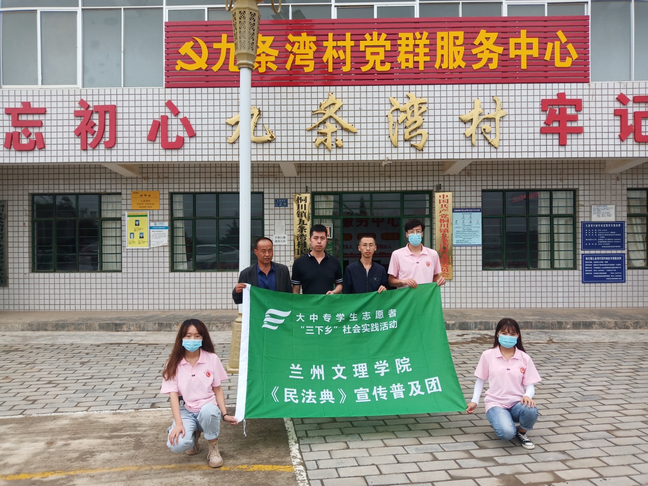 2020年7月16日,马克思主义学院暑期“三下乡”社会实践活动成员分别进入桐川镇郭家岔村、九条湾村、大滩村、高庄村进行《民法典》普法宣传活动。