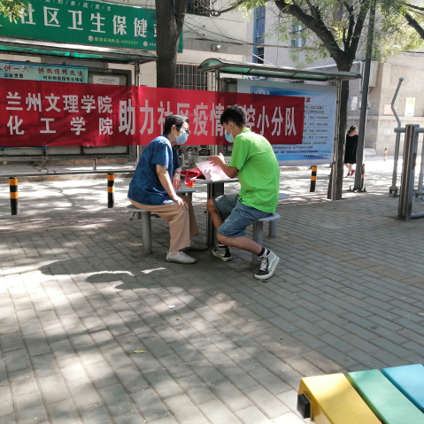 7月17日,兰州文理学院化工学院助力疫情防控小分队前往铁路西村街道和政西街社区开展暑期社会实践。