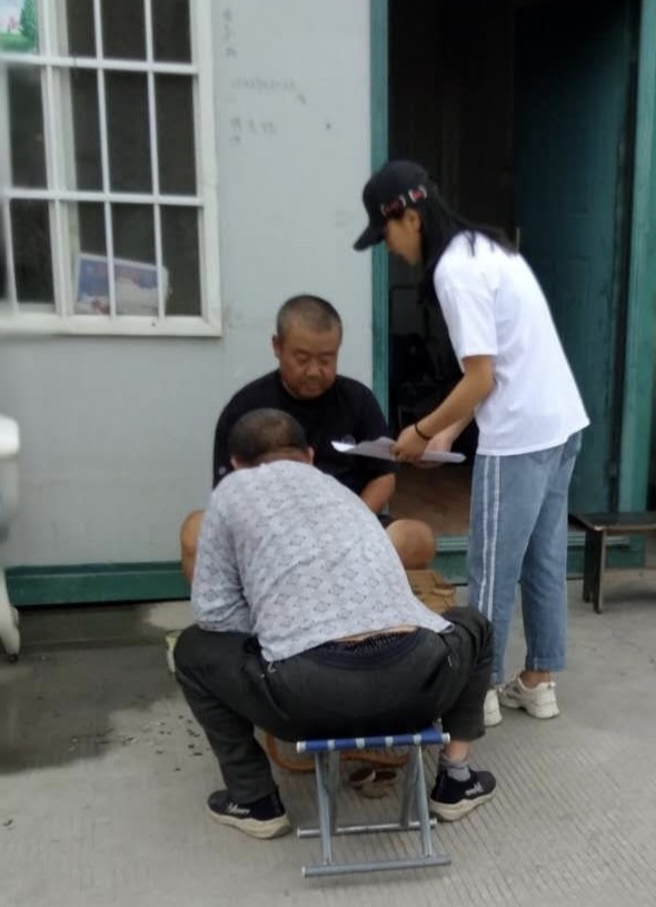 图为实践队成员向城镇居民讲解毒品种类、毒品的危害以及相关法律法规