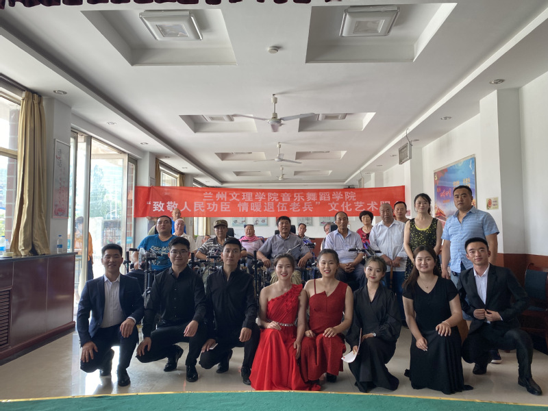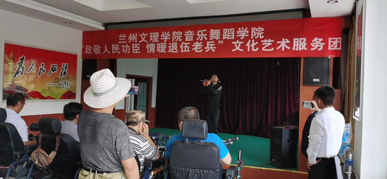 7月21日下午,音乐舞蹈学院艺术团前往兰州市安宁区甘肃省荣誉军人康复医院,开展了"致敬人民功臣,情暖退伍老兵"为伤残军人献爱心送温暖的文化艺术服务活动。