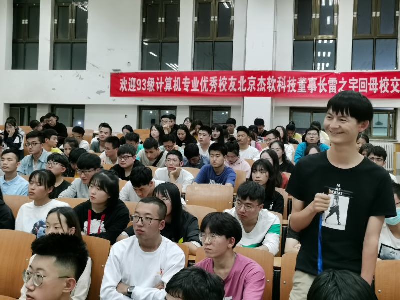 交流会上,雷之宇董事长表达了此次重返母校的激动之情,他表示,今天站在这感慨万分,首先感谢学校的邀请前来参加母校70周年校庆,也感谢数媒学院的邀请,能够与自己的学弟学妹们开以一个这样的面对面交流会。他还表示,既然接受了数媒学院的邀请来到了这个会议现场,那他就会全力为各位同学排难解惑。