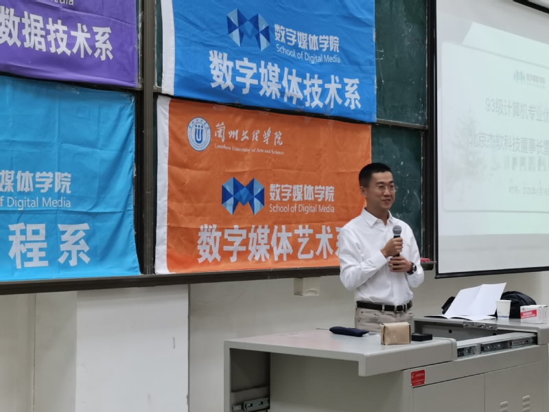 数字媒体学院为向数媒学子展示数字媒体学院悠远深厚的办学经验,同时充分发挥校友资源在推进学风建设与指导学生生涯规划中的重要作用,2020年9月18日,数媒学院邀请到受学校之邀参加70周年校庆活动的优秀校友原教育学院(现兰州文理学院)首届93级计算机专业优秀校友北京杰软科技董事长雷之宇,与学院软件工程、数据科学与大数据技术、数字媒体技术、数字媒体艺术学生代表进行走进数字媒体学院与学弟学妹面对面交流,交流会在我校综合楼阶梯教室圆满举行。交流会由数字媒体学院院长李恒杰教授主持。