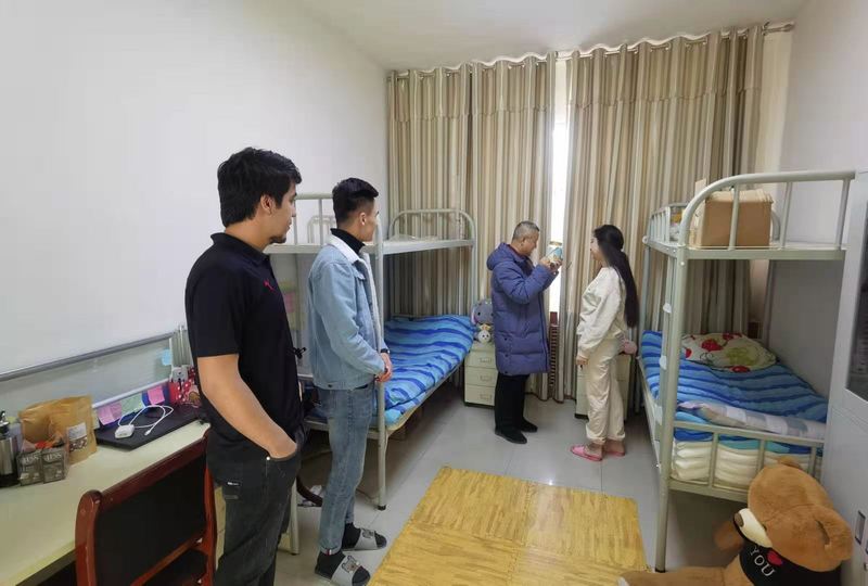 1月29日,在新春佳节来临之际,副校长王克太前往留学生公寓看望慰问春节期间留校学习的外国留学生,为他们送上学校的关怀和新春的祝福,并检查留学生公寓疫情防控工作。