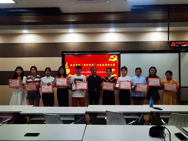 6月7日上午,教育学院党总支 “信仰味道”红色故事会决赛在1号楼802教室如期举行,通过初赛遴选的29名选手参加了决赛。王成德、傅涛、杨丽丽、左彩霞、康红英老师担任决赛评委,教育学院党总支书记张莉出席本次活动,2019级学前教育学专业本科班学生观摩了比赛。