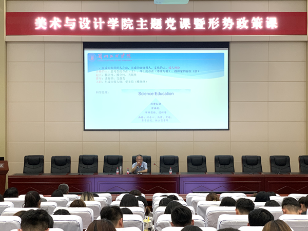 6月14日晚,副校长李敏骞在学术报告厅为美术与设计学院师生作了题为《德智体美劳的目标与信念实现》的辅导报告,学院2018级全体和2019级部分专业班级学生共260余人参会,活动由美术与设计学院党总支书记贾志明主持。