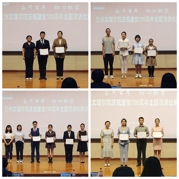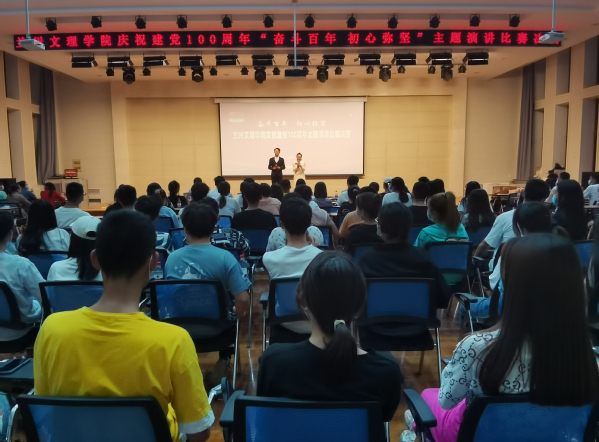 为庆祝中国共产党成立一百周年,深入推进青年学生党史学习教育,引导同学们厚植爱党、爱国、爱社会主义的情感,让红色基因、革命薪火代代传承,我校于7月1日晚在艺苑楼多功能厅举办了“奋斗百年·初心弥坚”主题演讲比赛决赛。