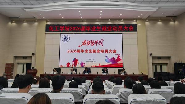 为扎实推进2026届毕业生就业工作,引导学生树立正确就业观念,9月18日,化工学院召开2026届毕业生就业动员大会。学院领导班子成员、毕业班班主任及全体2026届毕业生参加会议。