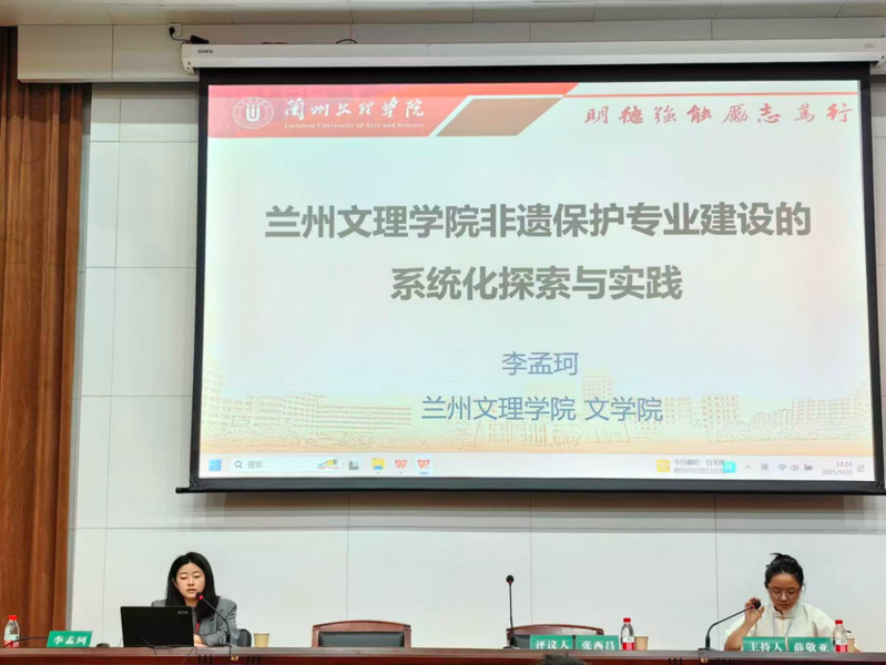 在“学科建设”分论坛中,李孟珂博士以《兰州文理学院非遗保护专业建设的系统化探索与实践》为题作交流发言。她详细介绍了我校在非遗学科建设、人才培养及校地合作中的特色经验,重点宣介我校非遗保护专业以“1院1刊1馆1库3基地”为核心,构建覆盖教学、研究、实践的非遗系统性保护与传承创新体系的成功做法。发言内容贴合非遗保护实践需求,引发与会专家学者的广泛热议与深度共鸣,充分展现了我校在非遗领域的办学特色与实践成果。