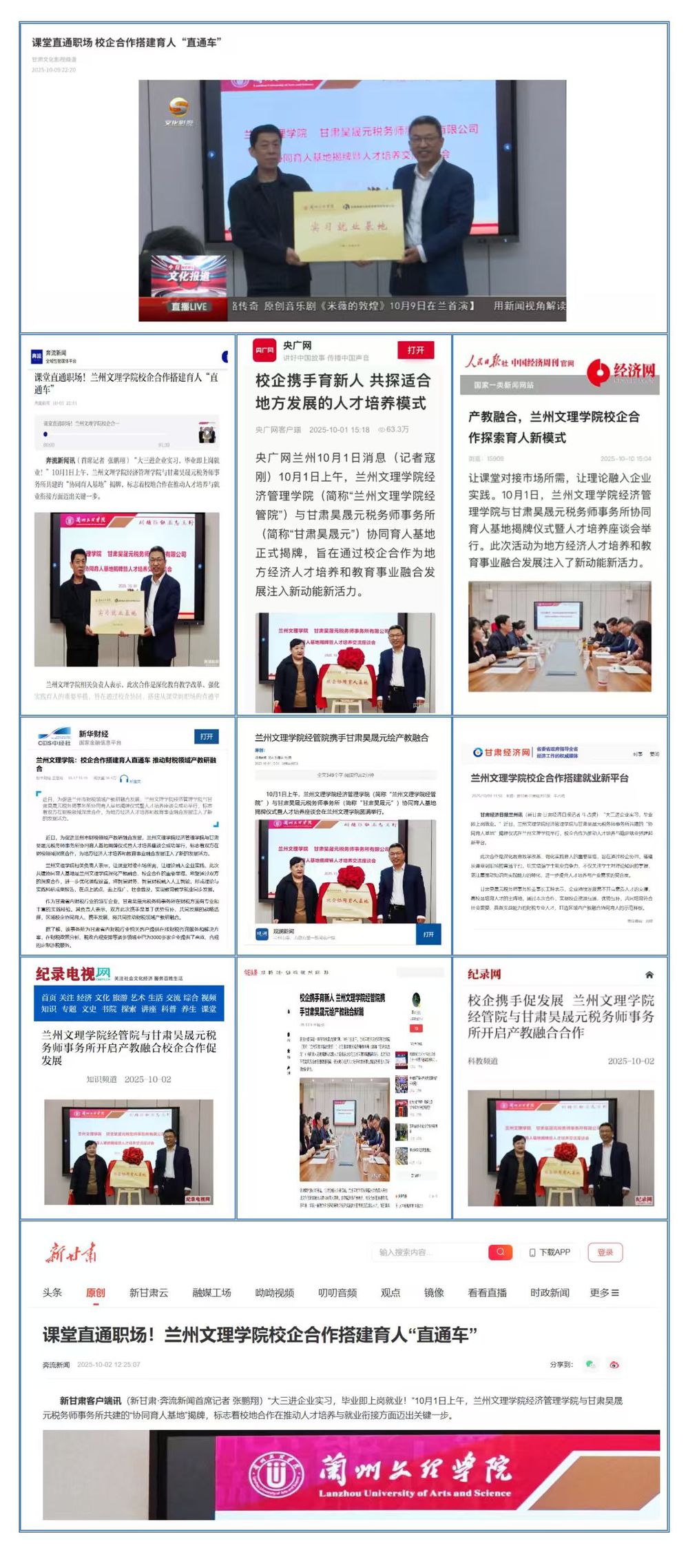 近日,经济管理学院与甘肃昊晟元税务师事务所协同育人基地举行挂牌仪式,该基地于6月建成,双方围绕“产教融合、协同育人”,共建实习实践与就业平台,探索“课堂直通职场”的人才培养模式,为地方经济发展输送复合型应用人才,相关活动获央地多家主流媒体报道。