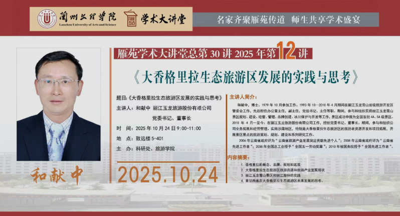 雁苑学术大讲堂预告:《大香格里拉生态旅游区发展的实践与思考》