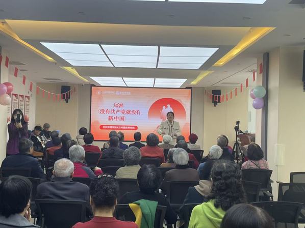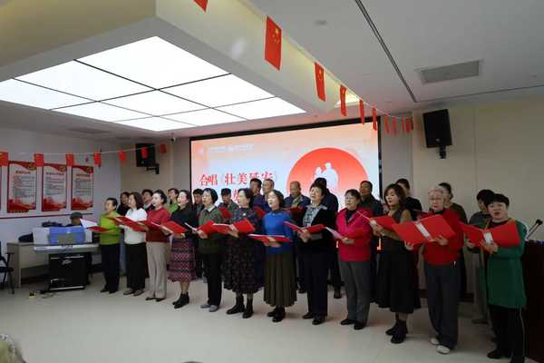 活动中,支部老党员参观了护理院的康养设施,了解新型康养理念与运营模式,并与在院老人亲切交流,送上暖心关怀。随后举办的文艺演出中,双方老同志共同表演了诗朗诵、器乐演奏、合唱、舞蹈、戏曲等精彩节目。现场气氛温馨热烈,活动最后全体齐唱《没有共产党就没有新中国》,将气氛推向高潮。