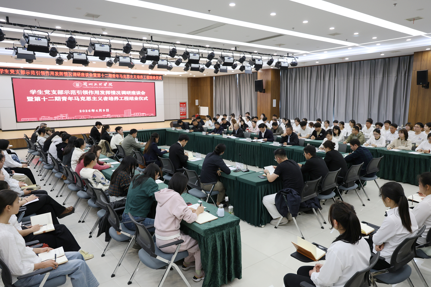 4月9日下午,学校召开学生党支部示范引领作用发挥情况调研座谈会暨第十二期青年马克思主义者培养工程结业仪式。会议集中学习传达了《中国共产党普通高等学校基层组织工作条例》和党建带团建相关工作要求。校党委副书记普登学出席会议并讲话,党委委员、党委组织部部长马争朝主持会议。